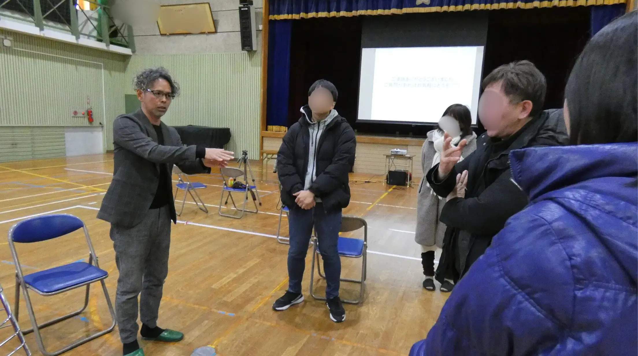 そして講演後には、寒い体育館のストーブの前に集まり、参加者と講師が交流する時間も生まれました。